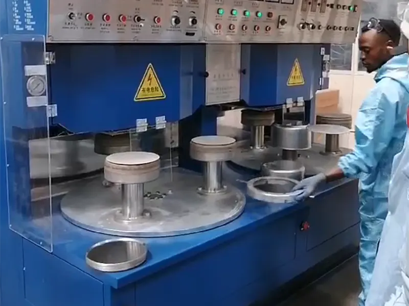 Дат баспас болоттон жасалган идиштерди өндүрүү үчүн түштүк кореялык кардардын катуу күйгүзүүчү машинасы колдонулууда